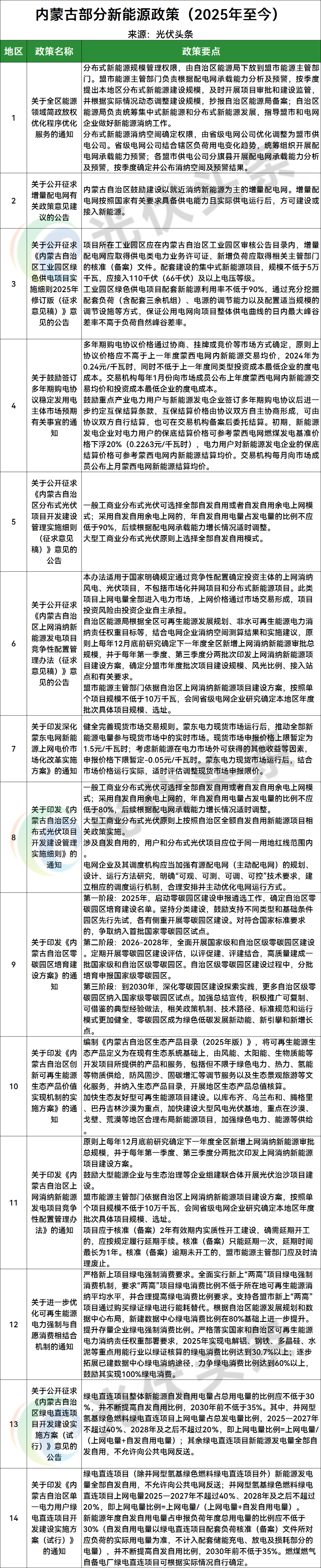 此外,2025年至今,内蒙古分布新能源相关政策14条。
