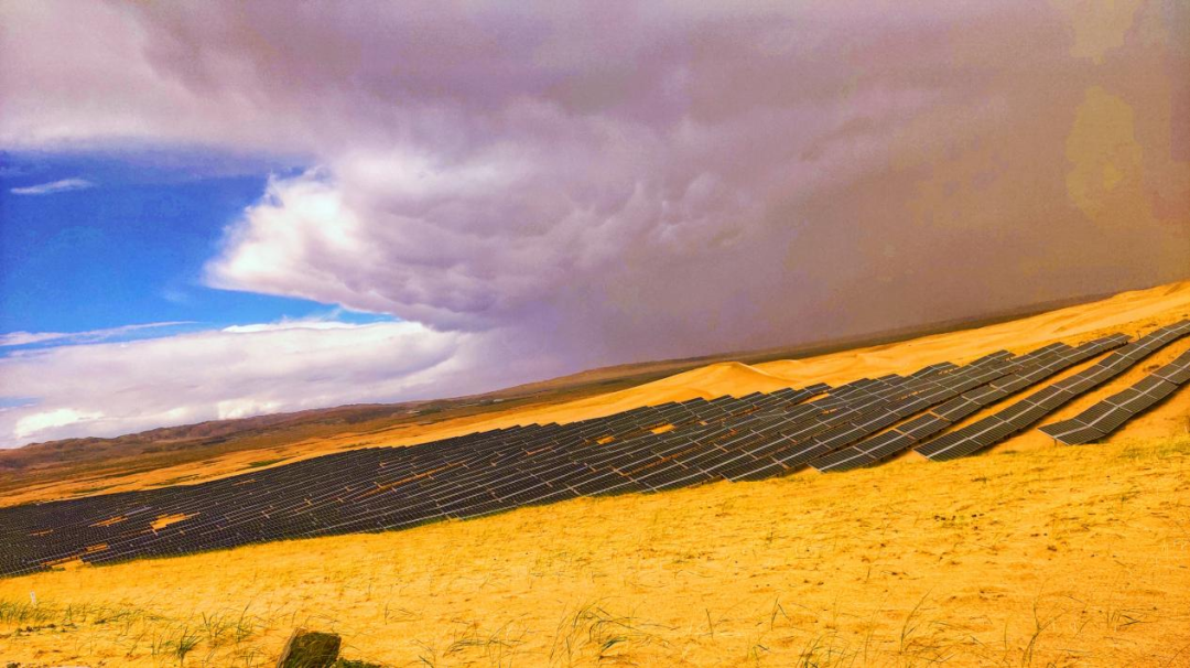 内蒙古公司陶力光伏电站位于巴彦诺日公苏木都尔勒吉嘎查、伊和布拉格嘎查,总装机容量4万千瓦,安装4212套固定可调支架、109512块光伏组件,每年可输送清洁能源约0.69亿千瓦时。该场站通过实施草方格固沙、基桩固沙、种植饲草和耐寒植物、树木防沙等措施,构建“光储治”一体化生态修复体系,有助于蓄水保土、调节气候,改善生态环境。