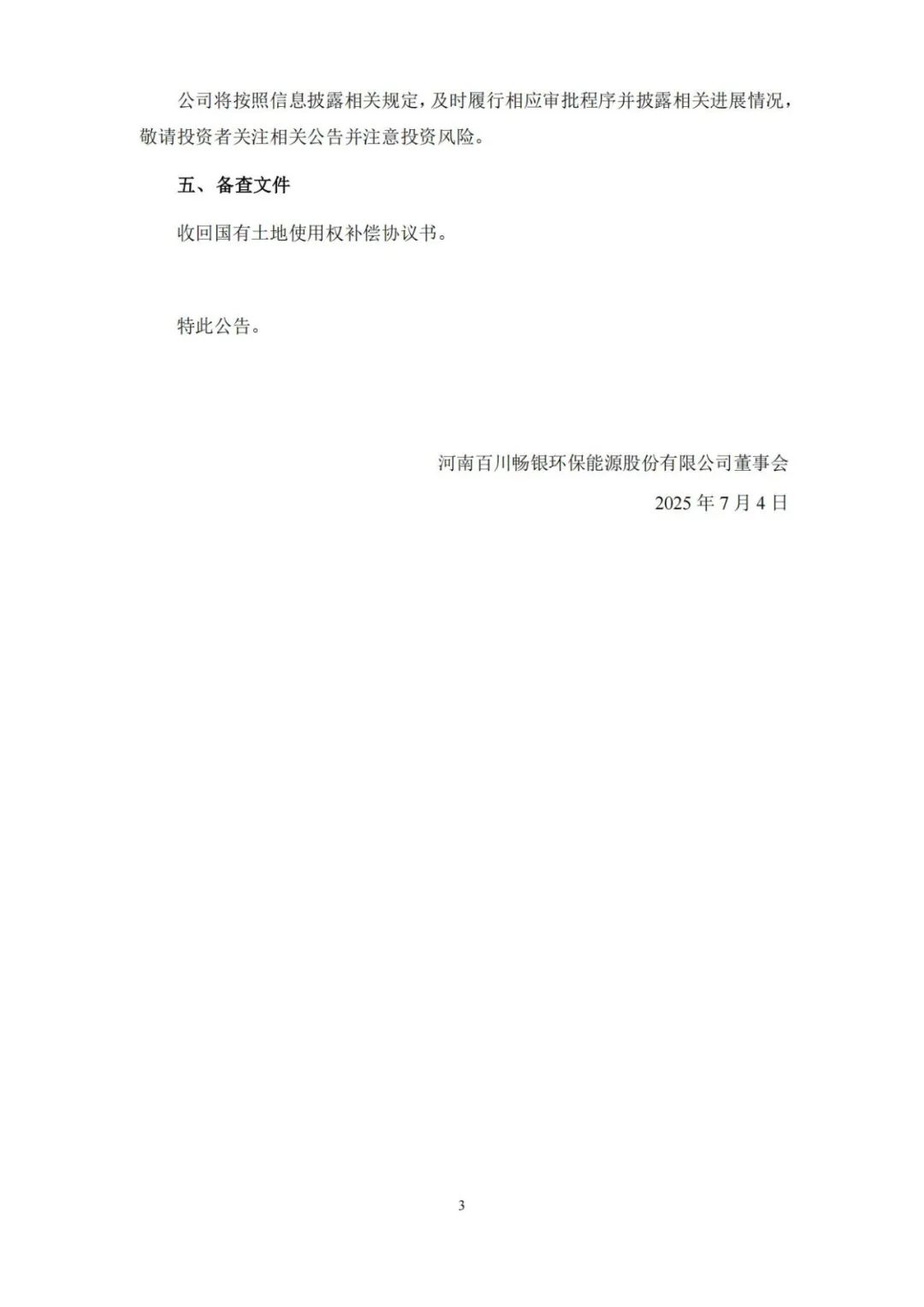 鉴于项目建设受宏观环境、光伏行业市场环境变化、融资环境、项目施工实施条件、项目施工相关方配合进度等多种因素影响,致使本项目无法按原计划推进建设进度。结合公司整体发展规划及市场情况,为优化公司资源配置,降低投资风险,切实维护公司及全体股东利益,经项目公司浙江百川畅银新能源有限公司与莫干山管委会协商,就该项目土地使用权收回,达成一致协议。