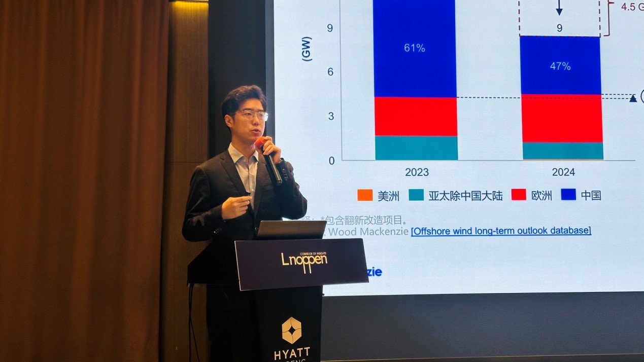 伍德麦肯兹海上风电市场分析师王宇凡以《全球海上风电市场的现实与机遇》为题发表了演讲,分享了全球海上风电市场现状、市场的动态调整以及未来发展的关键因素。