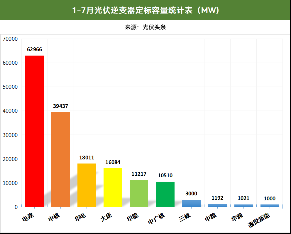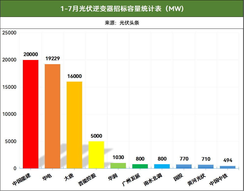 光伏头条通过分析发现1-7月央国企招标中,光伏逆变器招投标市场呈现如下趋势和特点: