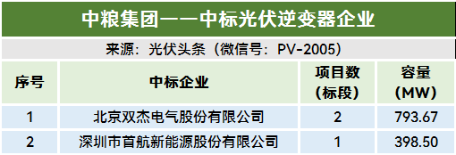 1月8日,中粮集团旗下新疆鸿泰新能源投资有限公司2025年-2026年关于组串式逆变器三个标段确定了中标候选人,北京双杰电气股份有限公司与首航新能最终中标。