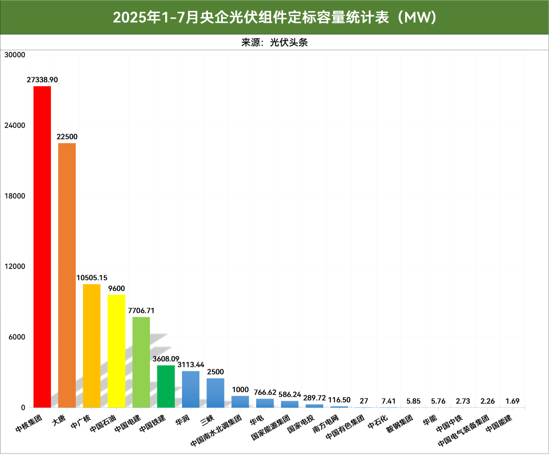 采购企业方面,中核集团、大唐、中广核、中国石油、中国电建、中国铁建、华润、三峡、中国南水北调集团、华电、国家能源集团、国家电投、南方电网、中国有色集团、中石化、鞍钢集团、华能、中国中铁、中国电气装备集团、中国能建、国家电网、国铁集团、中国宝武集团、中国建材集团等24家央企均有光伏组件采购项目定标。