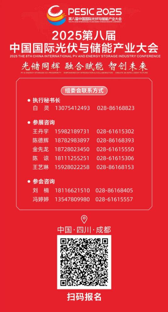 11月17-20日,2025第八届中国国际光伏与储能产业大会将于中国成都隆重举行。期间,作为大会重要平行会议之一,由大会组委会与四川省产业与金融发展促进会联合举办的“弃光弃风解决方案高层研讨会”将同期举行。会议聚焦“多能互补消纳革命:破解弃风弃光困局的系统化路径”主题,共同探讨弃光弃风解决方案、多能互补综合应用创新路径、行业标准制定、商业模式创新以及政策支持等关键问题,赋能光储产业可持续发展。