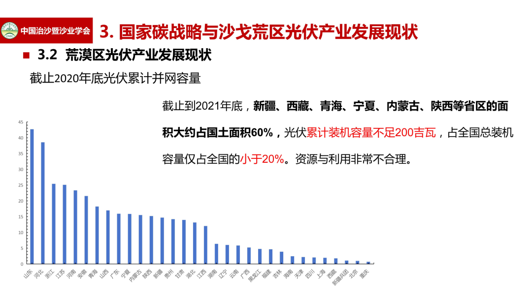 此外,杨文斌还介绍了荒漠区光伏产业发展现状。