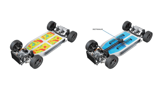 一个配备Dectravalve、由16个模块组成的电池包可以分为四个区域,每个区域包含四个模块,Dectravalve独立控制四个冷却回路。鉴于电动汽车架构正趋向于取消模块,转向电芯直接集成到电池包或底盘的策略,即电芯被大量单独安装,那么Dectravalve如何应对?