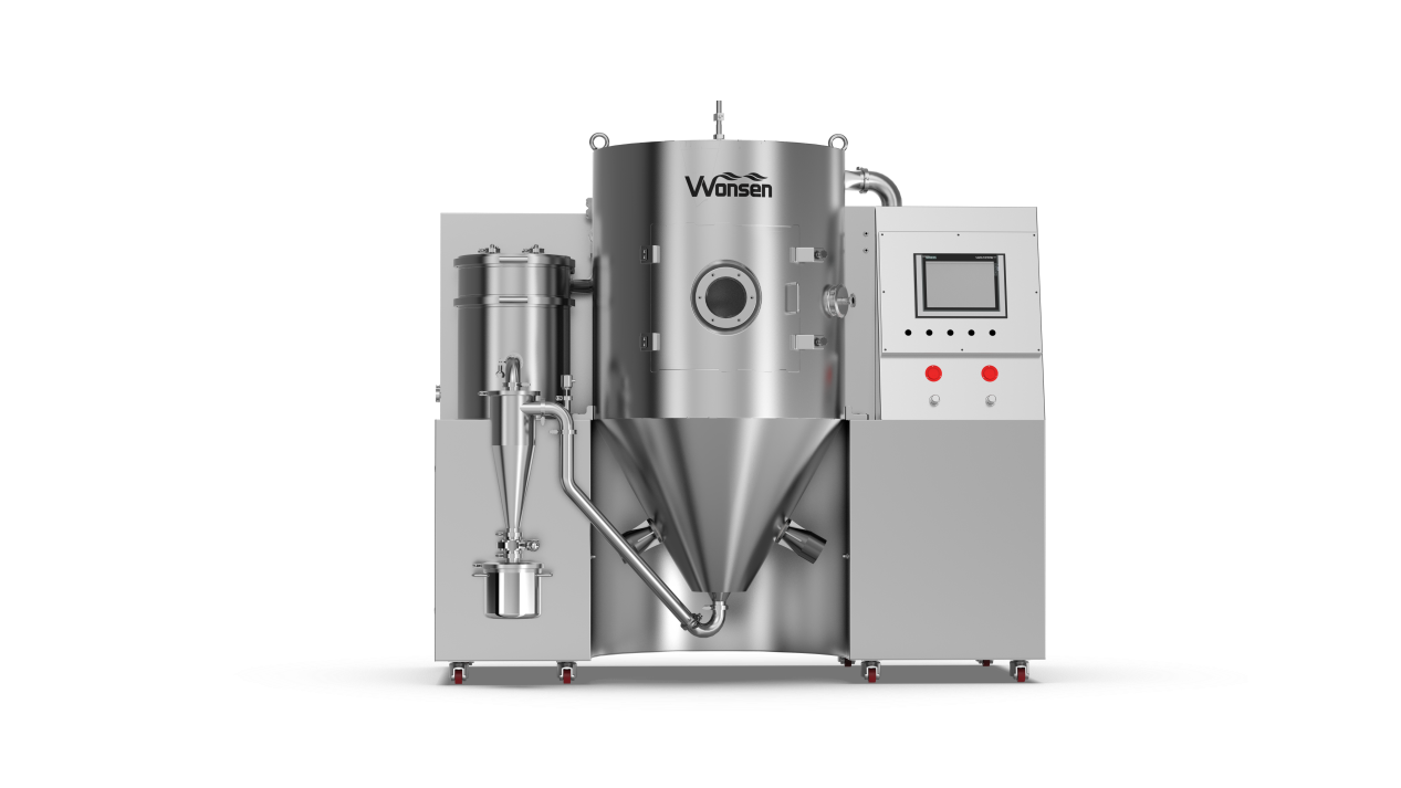 【主要特点】: *采用旋切进风技术与可调整蜗壳,确保热风均匀分布,不反顶。 *热源可选电加热、蒸汽加热或多种加热组合方式,确保高效低耗。 *整机结构紧凑美观,操作简便,热风室可拆清洗,进风温度可调节控制。 *干燥室壁和室顶可采用空气夹套冷却系统以防止物料热挂壁。 *干燥室内壁可采用空气回转吹扫装置以消除或减少粘壁现象。 *收粉系统可采用除湿空气风送冷却技术以冷却产品及防止吸潮结块。 *以惰性气体为载体传热,密闭循环使用,有利于节约载热体、回收有机溶剂、防止毒性物质污染大气和物料氧化。 *具有温度、压力、含氧量等在线监测与自诊断控制功能,确保干燥过程的安全性,智能控制化程度高。 *符合GMP生产要求,干燥空气洁净度优于10万级,清洗方便,产品品质稳定。