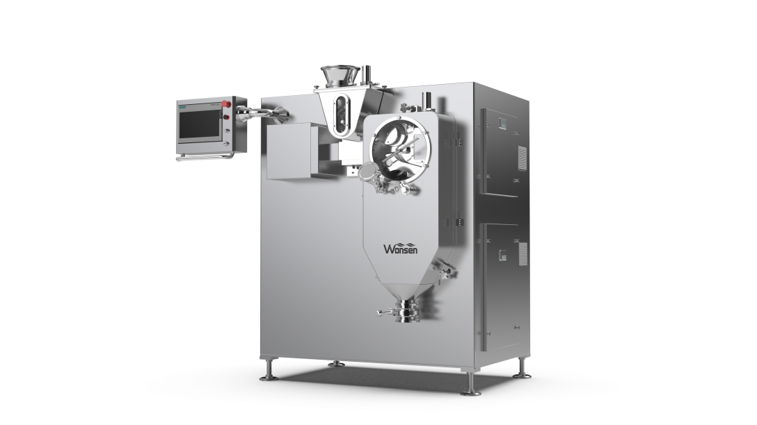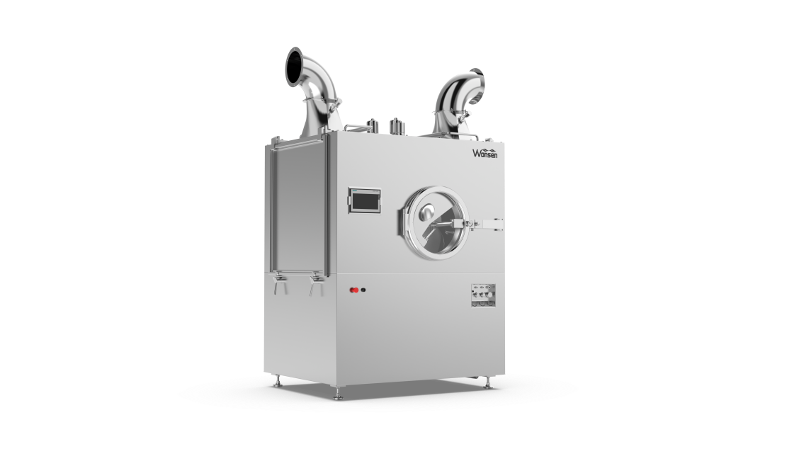 【主要特点】: *素片在流线型导流板作用下,翻滚流畅,热交换稳定,杜绝冲击、碎边和磕边,导流板窄小,避免素片磨损和包衣液粘附,提高成品率。 *采用新式喷枪,雾化均匀,喷雾面大,方向可调,满足柔性化制造工艺需求。 *恒压变量动泵,取消了回流管,稳定供应雾化包衣液,防止喷枪堵塞,且清洗简单,无死角。 *由PLC和HMI组成的控制系统可实现工艺参数实时定量监控,适应不同制药工艺需求,系统可靠稳定,符合GMP要求。