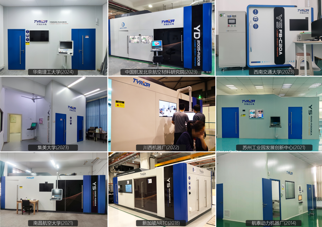 为适应市场需求,经多年技术创新,天瑞达研制出拥有自主知识产权的激光冲击强化设备系列产品,包括高能量(焦耳级)/低能量(毫焦级)、固定式/移动式等各型设备,能够满足客户的多样化需求,设备拥有专利外观,采取一体化设计,具有环境适应性好、工作界面简洁、操作门槛低、加工效果稳定、设备可靠性高等特点。截止目前,已累计交付客户十余台产品,稳定工作10余年。