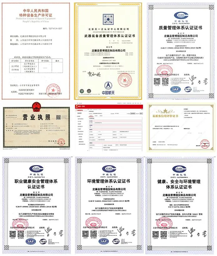 我公司始终坚持以创新迎接机遇,用流程创造价值的经营理念,使企业在自我发展与激烈的市场竞争中得到了长足的发展,特别是在装备提升和技术进步以及产品开发方面收到了很好的成效,真正实现了超常规、跨越式发展。目前公司已取得特种设备压力容器法兰生产许可证、ISO9001认证、14001环境管理体系认证、HSE健康、安全与环境管理体系认证、45001职业健康安全管理体系等证书。
