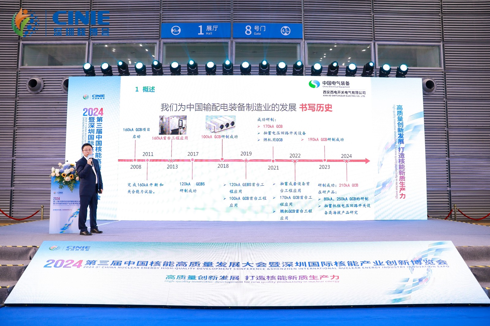 中国西电集团有限公司展示了100KA GCBA、160KA GCB、170KA GCB、190KA GCB、210KA GCB等国产大容量发电机出口断路器在核电的应用。