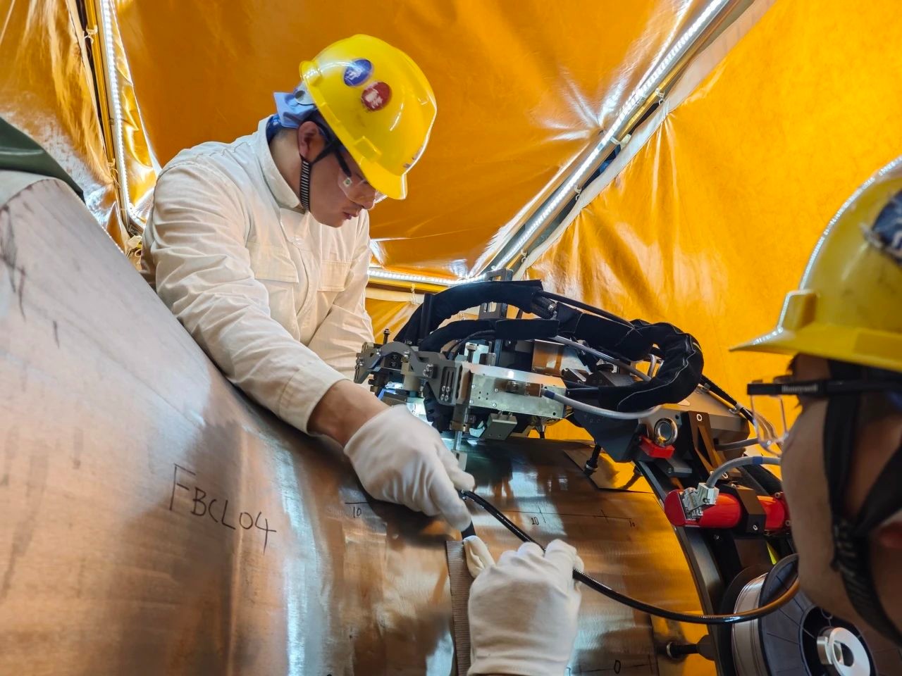 三门核电项目部充分发挥内外部协同作战的优势,成立主管道焊接联合攻坚队,作业前充分吸收借鉴以往核电机组的施工经验,组织召开主管道焊接风险挑战评估会,充分预估现场可能出现的问题并提供应急预案;并不断提高核安全文化管控要求,高标准建立主管道焊接施工清洁区,为现场焊接提供环境保障,过程中严格把控人、机、料、法、环五大先决条件,确保每一个环节都精益求精,并高标准设置了焊接施工清洁区,保障了施工环境的高质量。