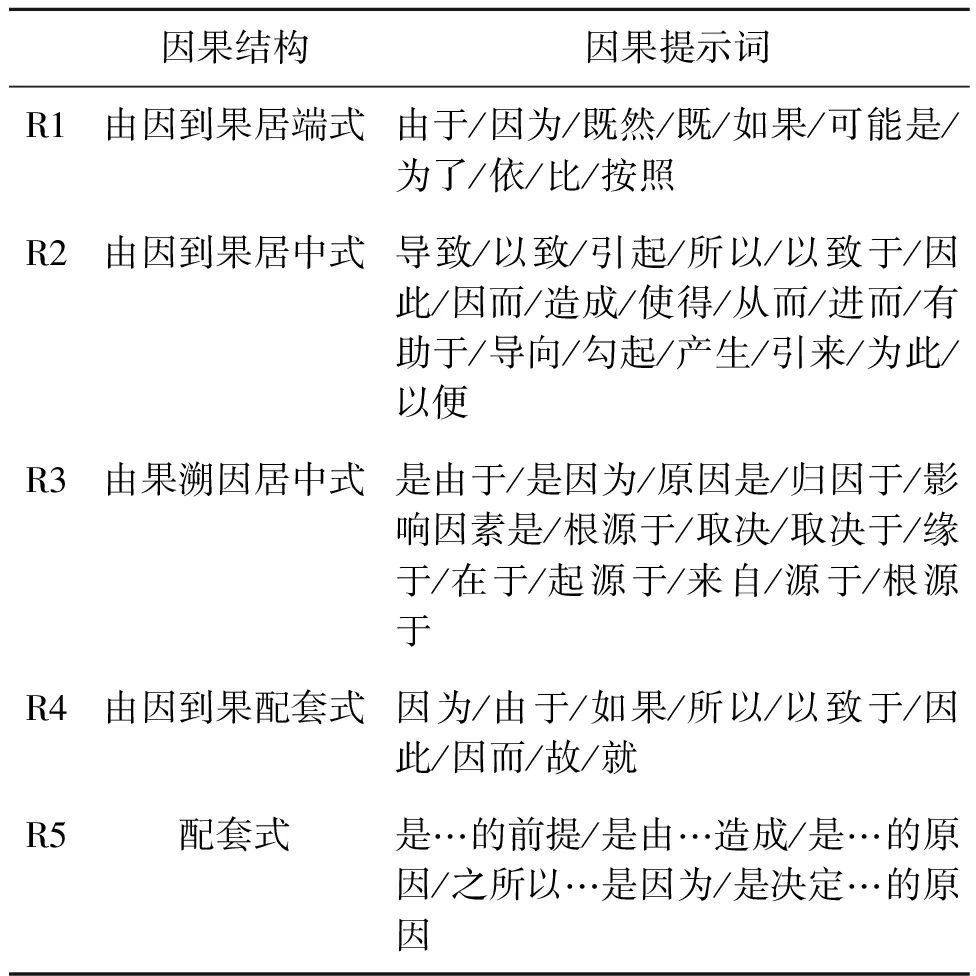 在报告整合的基础上,本文事件抽取主要包括事件触发词检测和事件判定两个步骤[14]。首先,采用自然语言处理技术进行文本预处理,对核电运行事件报告进行文本的清洗和过滤,切割为以词语为单位的文本集合。利用Hanlp进行词性分析,判断是否为事件触发词。其中若句子中包含表1中所示的因果提示词类触发词,则该句子为显式因果句,按照显式因果关系抽取的方法抽取其中的因果关系事件对[15]。