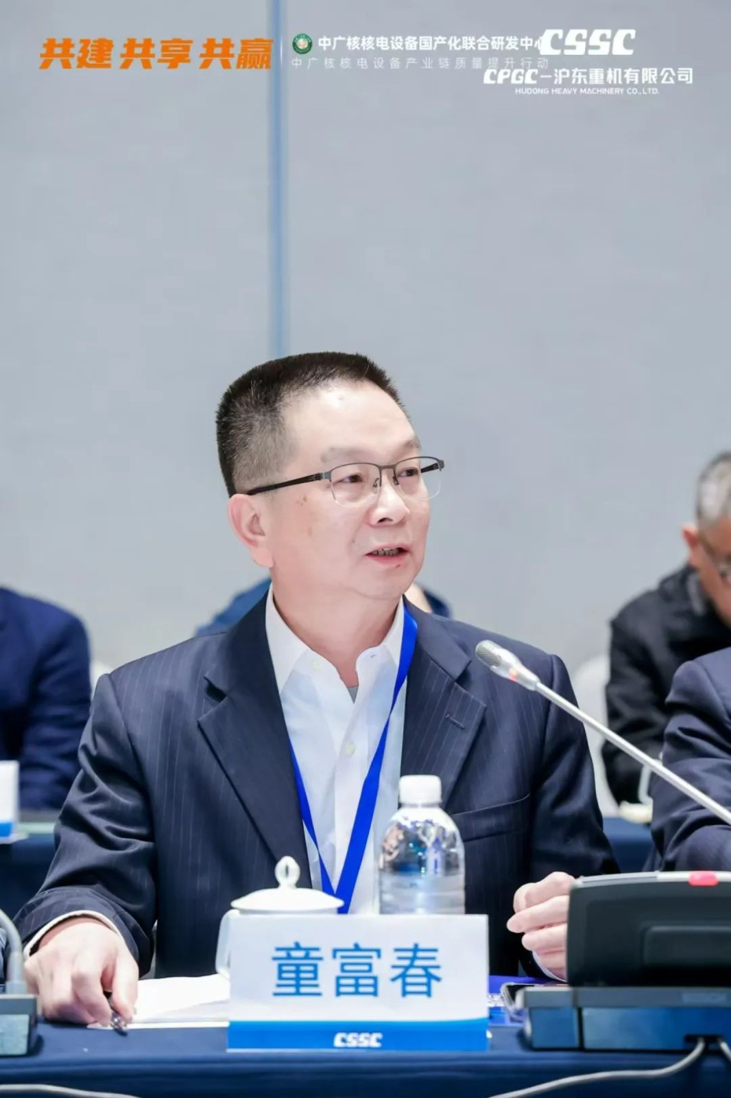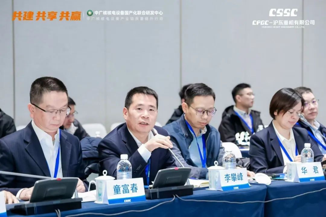 沪东重机有限公司党委书记、董事长李攀峰对各企业单位代表的到来表示欢迎,对中广核对沪东重机的支持和帮助表示感谢。李攀峰在致辞中表示,沪东重机将持续加强人员能力建设,并通过管理创新提升管理效率,从人、机、料、法、环、测等各个方面全力推动公司核电质量的持续提升,确保公司产品和生产过程的质量可靠性。