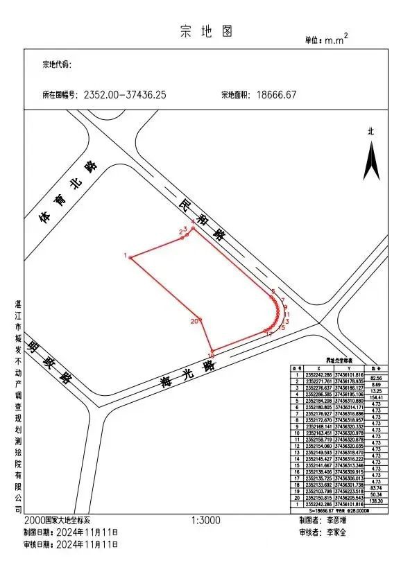 据公告文件,WGC2024069号地块位于湛江市赤坎区海光路北侧,宗地面积为18666.67平方米。该地块土地用途为商务金融用地(兼容科研用地)、文化设施用地。出让年限为商业用地40年,科研用地50年,文化设施用地50年。起拍总价为1.25亿元,起拍楼面地价约为2251元/㎡。