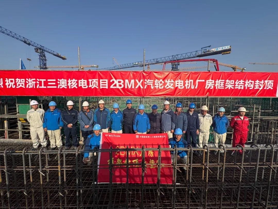 近日,三澳核电项目2号机组常规岛汽轮发电机厂房框架结构整体封顶完成,标志着2号常规岛施工主线将由混凝土框架施工转入钢结构安装阶段,为后续常规岛主厂房的汽轮机、发电机等设备引入创造了先决条件。