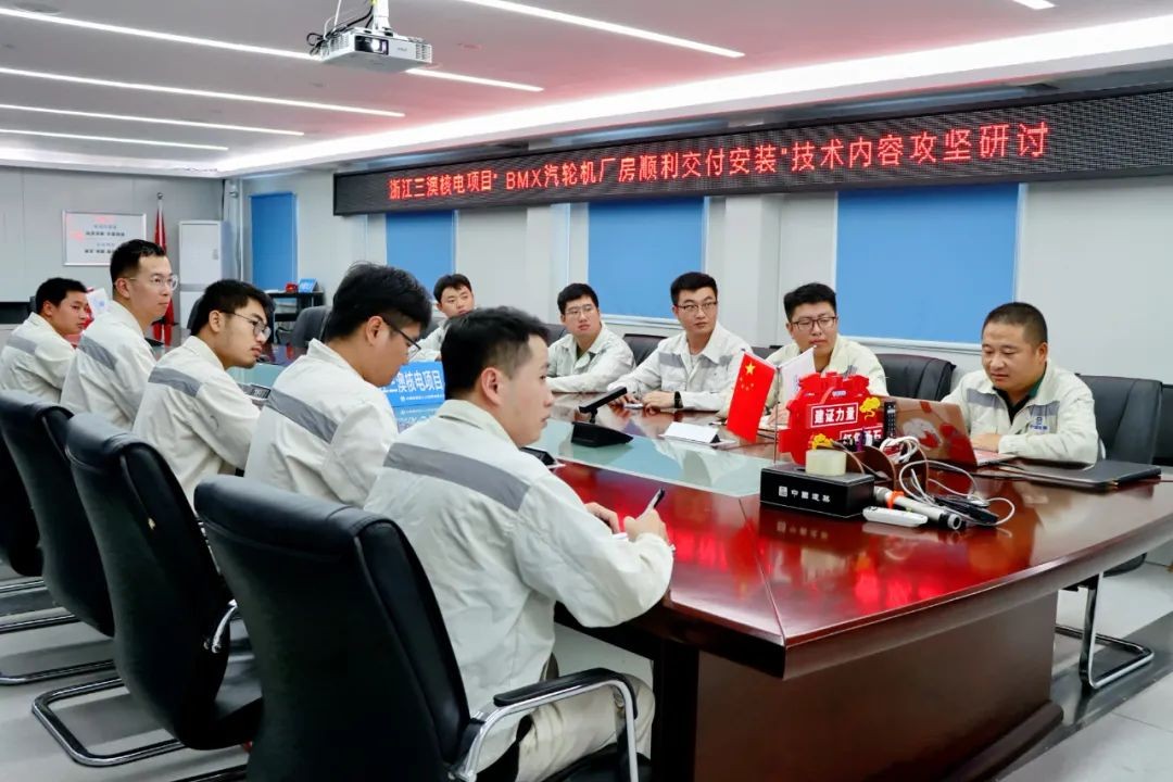 中建二局三澳核电项目部技术团队在前序常规岛主厂房建设经验上寻找改进空间,共推动完成华龙一号常规岛重要设计优化32项、施工方案优化25项,整体上优化了施工逻辑、简化了施工工序,达到促进度、控成本、创收益的目标,并结合安装需求,围绕BMX汽轮机厂房顺利交付安装节点涉及技术内容进行攻坚研讨,集思广益讨论易出现的技术难题及应对方法,秉承技术先行理念,明确个人攻坚任务,做好技术工作保障,助力核电汽轮发电机厂房高效履约。