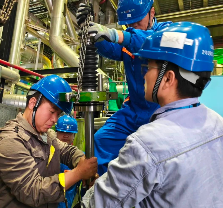 在进行反应堆整体螺栓拉伸机检修时,项目负责人彭望林发现电控系统会偶发绝缘值低问题,以往需要等外部专家支持后一起解决,“远水解不了近渴,我们自己来!”面对难题,大家逐一排查变压器、电机、电源等设备的零部件,找到导致绝缘降低的“凶手”,并进行同类项排查,发现了其他导致绝缘降低的零部件,使隐患得到根除。