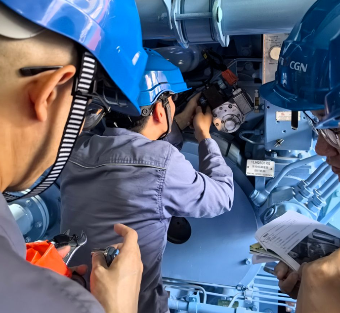 在柴油机检修项目中,青年员工廖浩然出色完成了拆装管道、油门调整、油泵组件的回装等关键工作,不仅积累了“经验值”,还强化了“战斗力”。