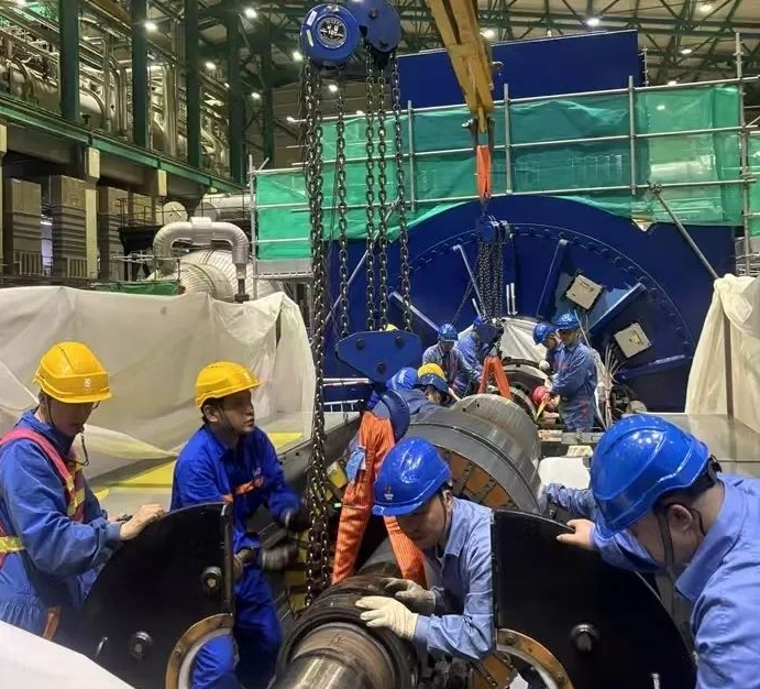 在发电机检修吊装转子时,发电机项目组面临着空间上的挑战,哪怕是1毫米的失误,都会引发严重后果。吊装期间,每一位成员紧密协作,凭借精湛的技能进行着精准调试,将转子安全、稳妥地放置于支架之上。“无他,但手熟尔,这是我们的核心能力!”吊装结束后,工作负责人杨岱平擦了擦汗,笑着说道。
