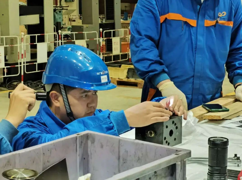 在对蓄能器进行全检时,项目组苏达秋发现蓄能器底部提升阀安装困难,于是立即停下工作开始逐一检查。在以毫米为单位的排查中,发现了蓄能器底部有一个0.5毫米的突起二级台阶,让密封圈填充率超100%,超出标准。随后,苏达秋迅速选定处理方案,彻底消除了该隐患。