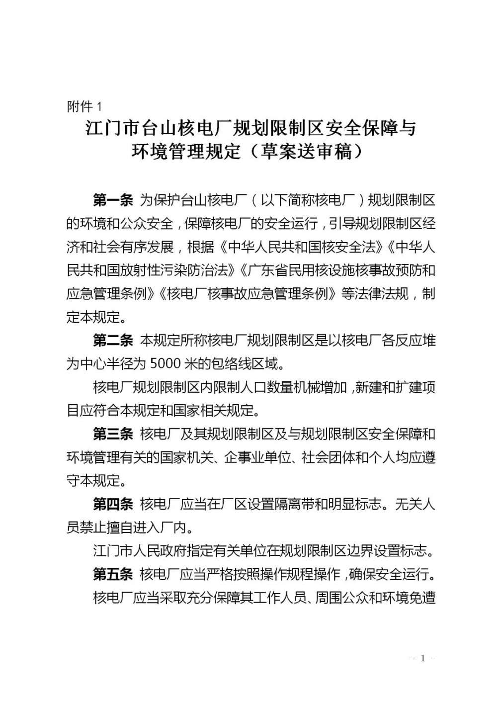 1:《江门市台山核电厂规划限制区安全保障与环境管理规定》(草案送审稿).doc