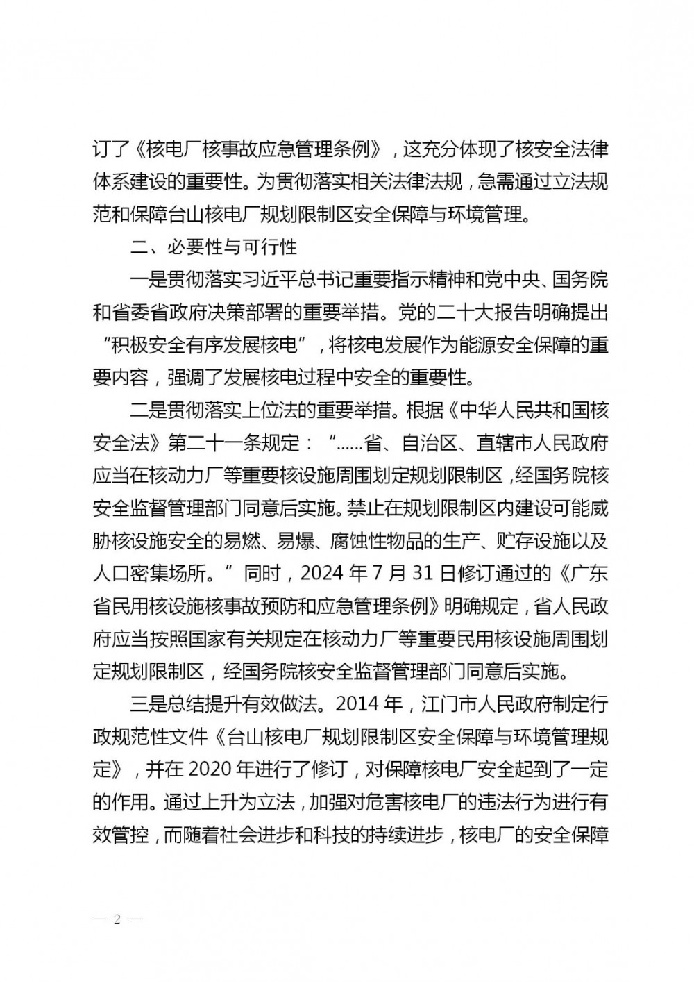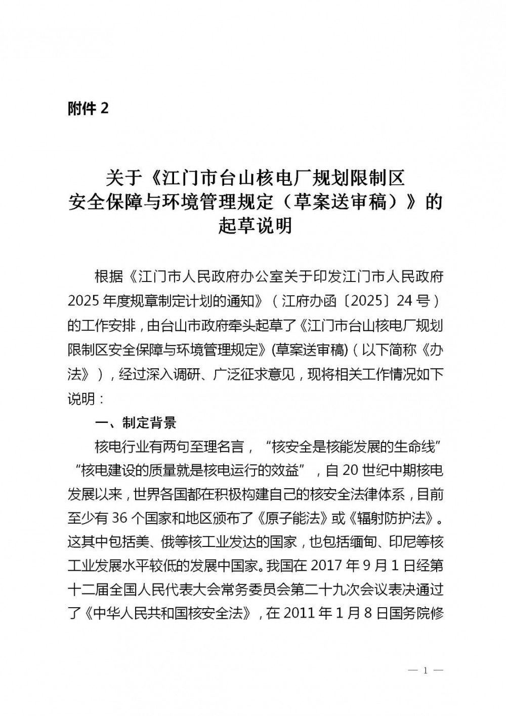2:关于《江门市台山核电厂规划限制区安全保障与环境管理规定(草案送审稿)》的起草说明.doc