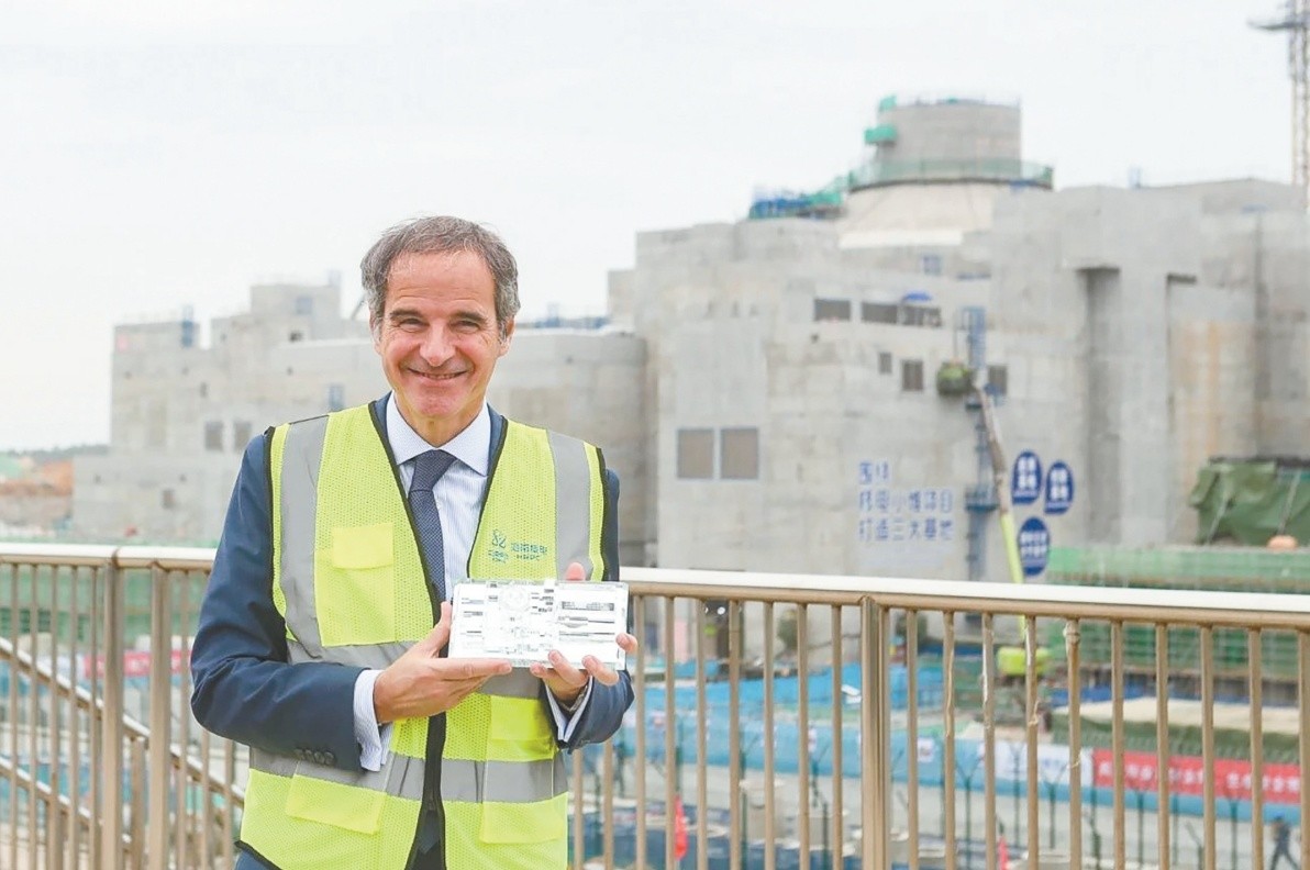 格罗西到访中国的首站走进中核集团海南昌江核电基地,实地调研全球首个陆上商用模块化小型堆玲龙一号。(供图:中核集团)