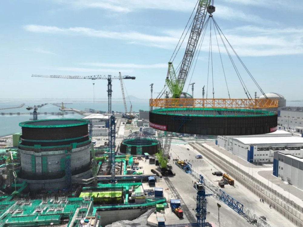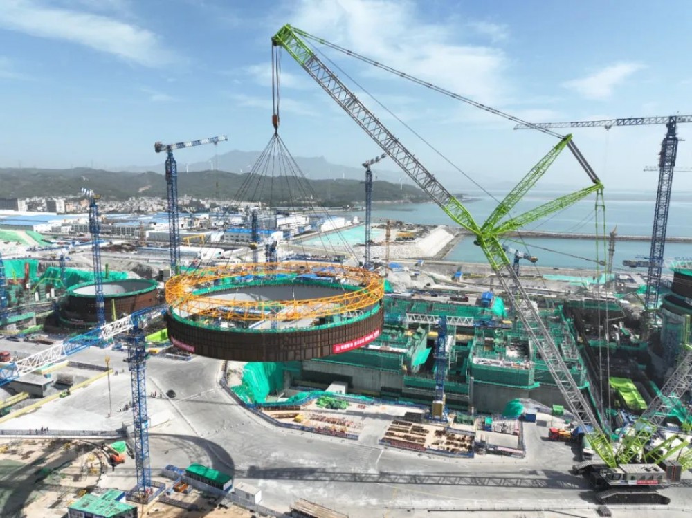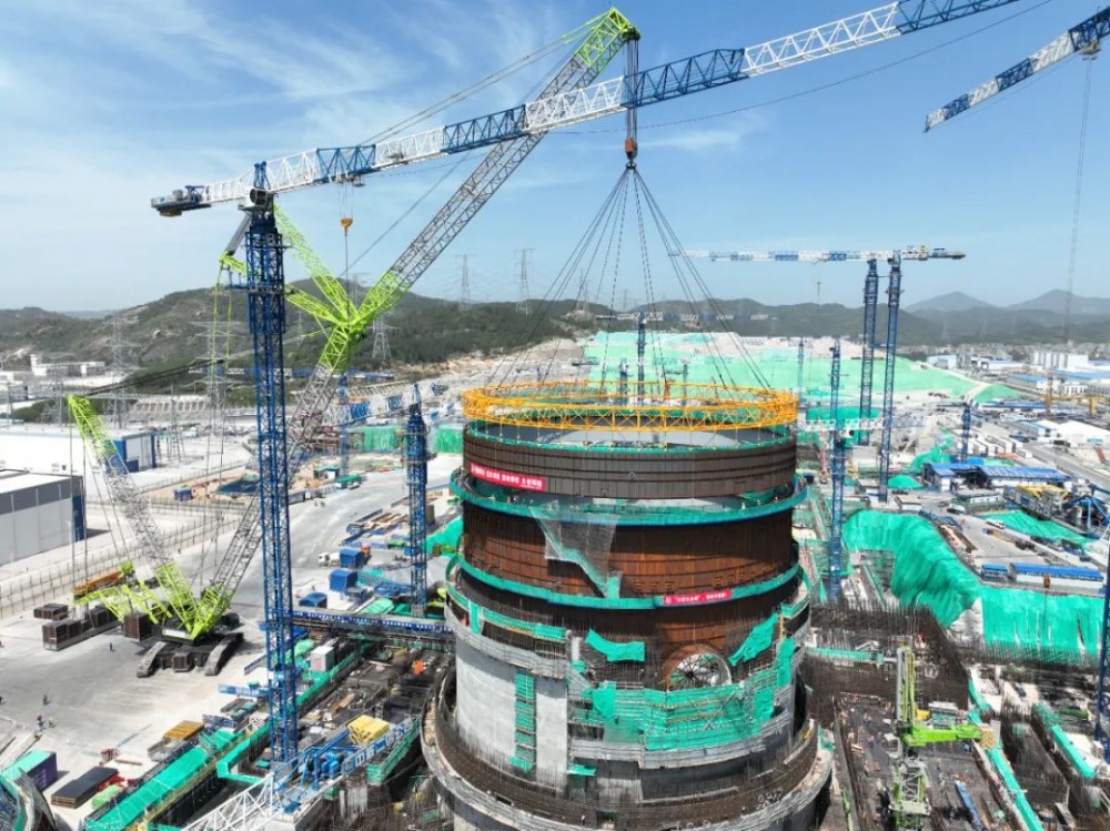4月14日,中核二四完成华龙一号漳州核电3号机组钢衬里模块六吊装,标志着反应堆厂房钢衬里筒体模块吊装工作已全部完成。