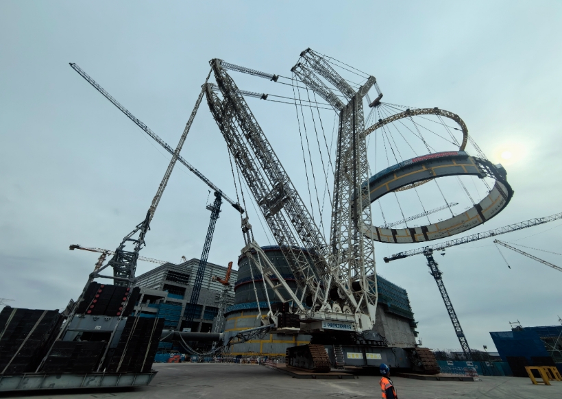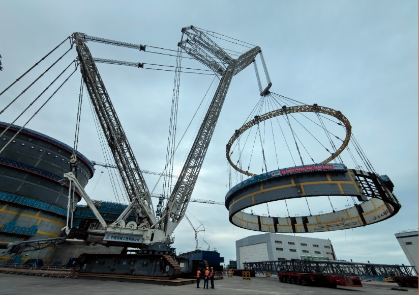 4月27日清晨,晨光微曦。中核机械工程海阳核电吊装项目部采用3200吨履带吊,历时2小时42分钟,顺利完成4号核岛屏蔽厂房SC结构6-7层模块吊装作业。整个吊装过程平稳有序,安全可控,为后续堆芯补水箱A(CMT)模块的就位创造了有利条件。