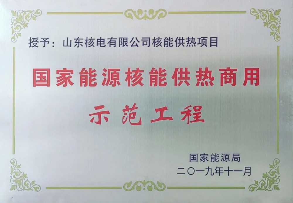 “暖核一号”一期“园区级”核能供热项目投运,被国家能源局命名为“国家能源核能供热商用示范工程”