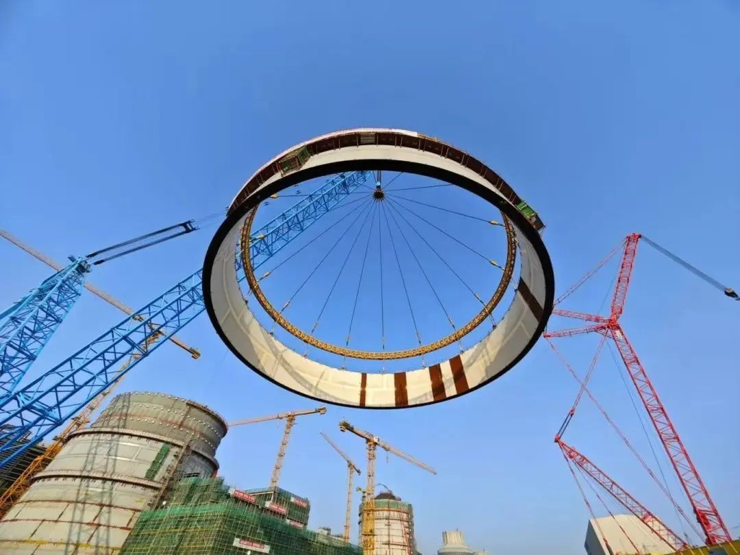 11漳州核电3号机组钢衬里筒体全部吊装完成