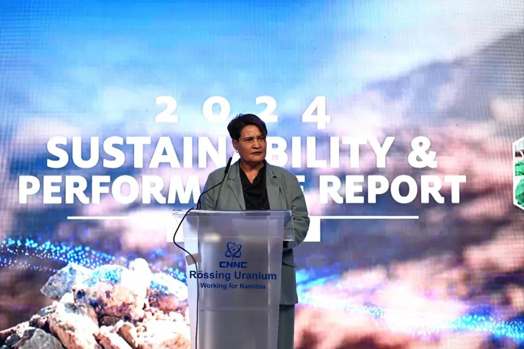 高登蒂娅克罗赫发表主题致辞。她表示,纳米比亚政府一直强调矿业应推动矿产资源的开发利用、为改善纳米比亚国计民生作出贡献,罗辛铀业在实现这一愿景方面取得了显著的成就,为纳米比亚经济社会发展作出持续贡献,在矿山开发过程中始终注重周边社区和民众。克罗赫呼吁社会各界携手合作,共同打造一种保护地球、赋能社区、促进共同繁荣的全新矿业模式。她高度肯定了中核罗辛在积极履行社会责任方面的卓越贡献,期待罗辛铀矿在智能采矿与环境保护领域引领行业标准,为纳米比亚矿业提供可持续发展范式。