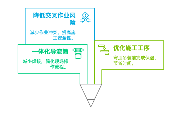 RPV保温模块化施工技术,优化了RPV保温结构形式,取消侧向支架,采用一体化导流筒结构,现场安装时将保温层块组装到导流筒后,再整体吊装就位到RPV支承环上。