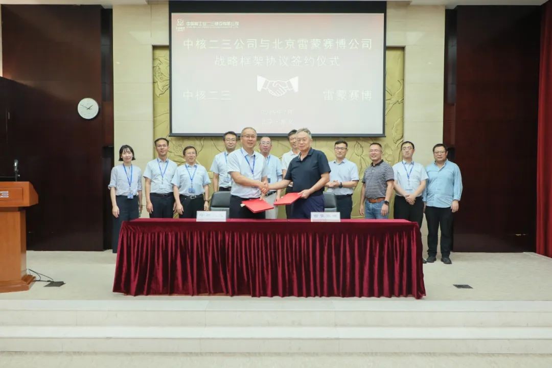 中核二三副总工程师张东辉,雷蒙赛博战略关系发展中心总监林颂及相关部门人员,中核二三技术中心相关人员参加签约仪式。
