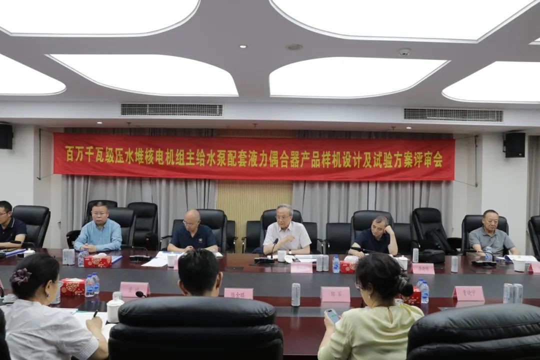 评审会首先由中核核电运行管理有限公司对液力偶合器国产化的设计输入了介绍,然后公司液力偶合器样机主设从设计参数确认,按照分模块设计(定子部分、转子部分、调速系统、辅助系统、仪控监测系统)向评审委员会专家进行了详细汇报介绍,对定子部件的强度、转子动力学、泵轮、涡轮腔内部流场的两相分布、压力分布计算分析等进行了介绍。对液力偶合器试验项目、单体试验台架、泵组试验台架进行了汇报介绍。