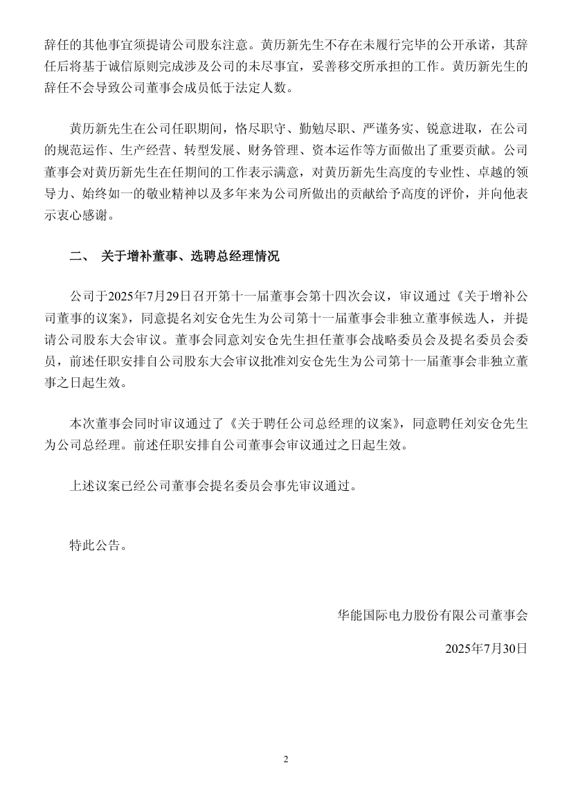 公司于7月29日召开第十一届董事会第十四次会议,审议通过《关于增补公司董事的议案》,同意提名刘安仓先生为公司第十一届董事会非独立董事候选人,并提请公司股东大会审议。董事会同意刘安仓先生担任董事会战略委员会及提名委员会委员,前述任职安排自公司股东大会审议批准刘安仓先生为公司第十一届董事会非独立董事之日起生效。