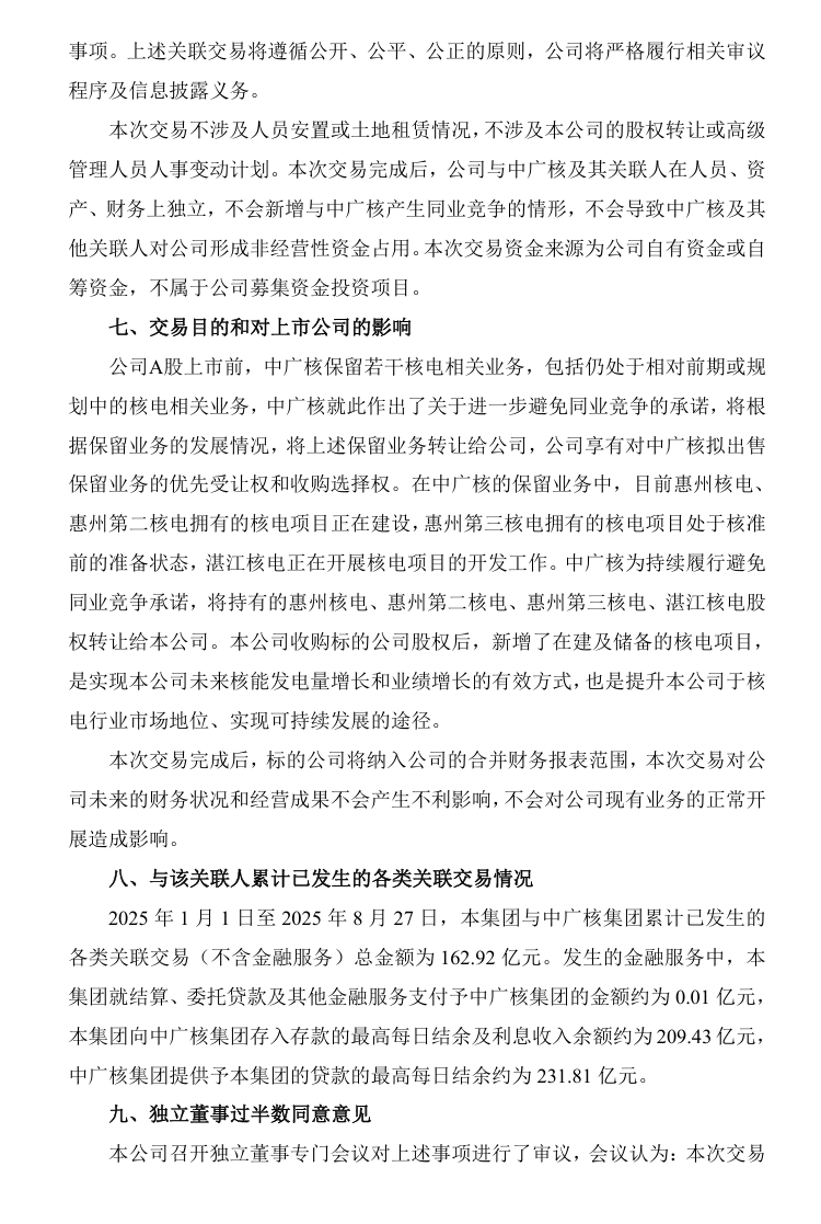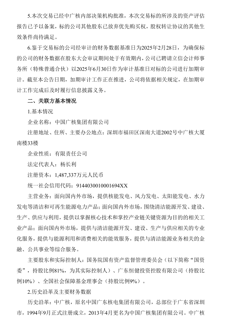 中广核为中广核电力的控股股东,按照《深圳证券交易所股票上市规则》的规定,中广核为中广核电力的关联人,本次交易构成关联交易。本次交易不构成《上市公司重大资产重组管理办法》中所规定的重大资产重组情形,也不需要经过有关部门的批准。