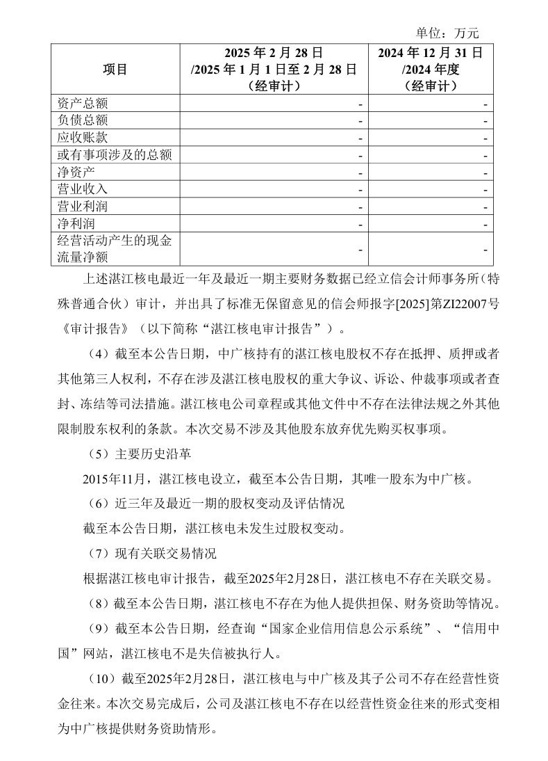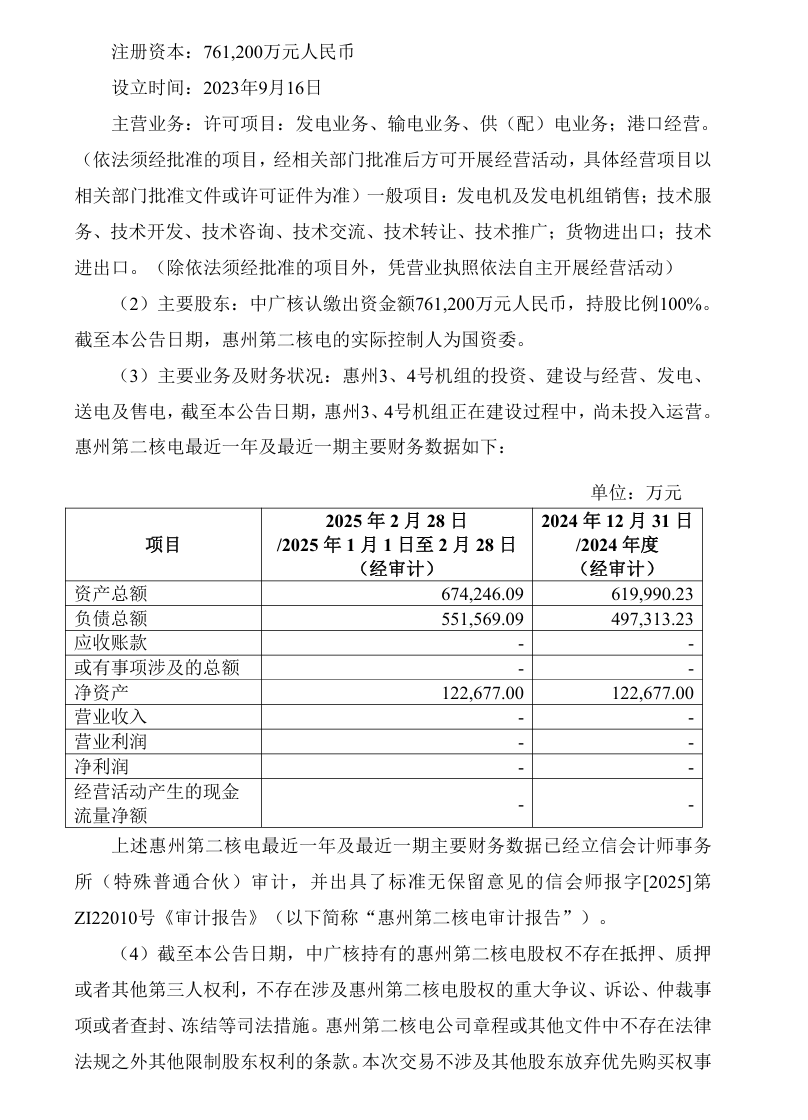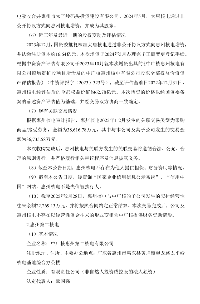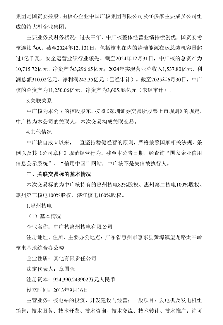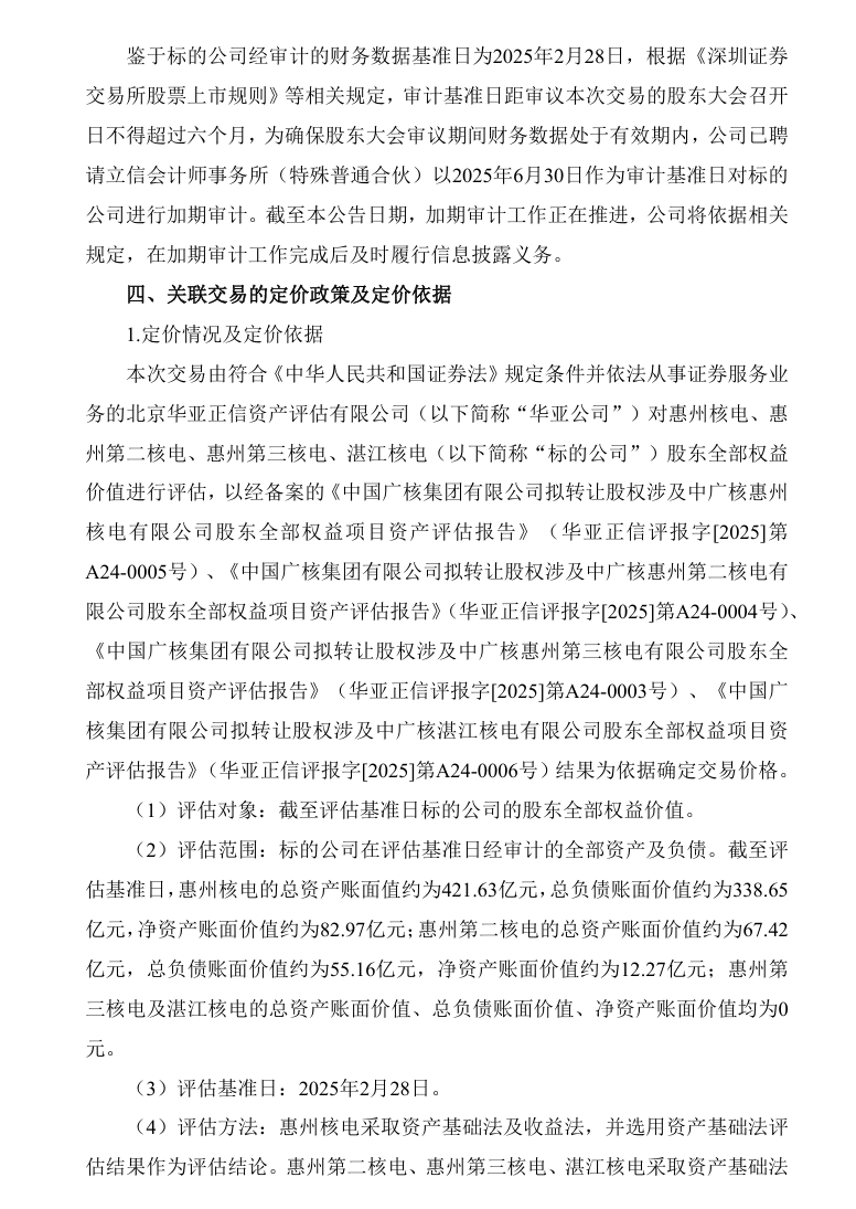 基于资产评估结果,经双方协商同意并确认,惠州核电82%股权的转让价格为802270.21万元,惠州第二核电100%股权的转让价格为135273.04万元、惠州第三核电100%股权及湛江核电100%股权的转让价格均为0元。