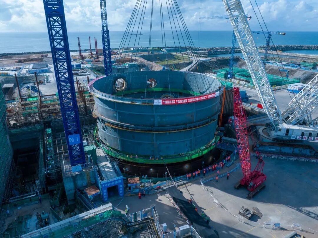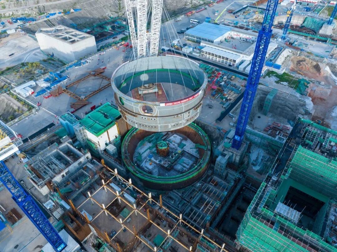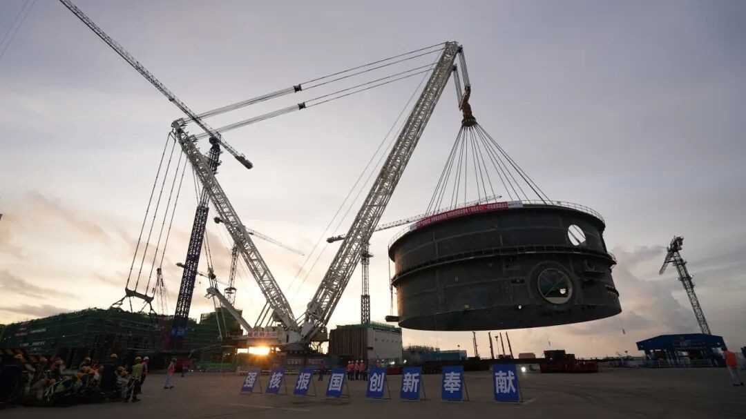 吊装载荷重量更大:集成各类附件后,CV筒体一环整体吊装重量突破千吨级,如此大载荷的吊装作业,对设备性能、施工方案与人员技术均提出极高要求,此次顺利完成吊装,充分印证了中核二二应对重型构件吊装的成熟能力。
