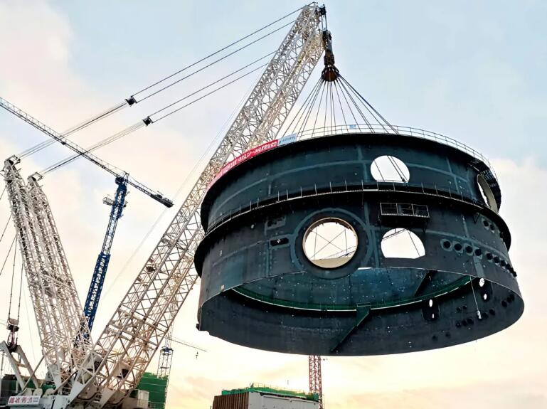 8月31日8时35分,广东陆丰核电1号核岛钢制安全壳一环(CV1R)顺利吊装就位,整个过程平稳有序、安全受控。这是继CA20模块之后又一“千吨级”大件成功吊装,标志着1号核岛建安工作正式进入高峰期,为核岛后续土建结构施工和设备安装创造了有利条件。