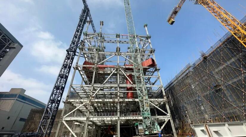 在国庆与中秋“两节”前夕,任丘热电二期2X350兆瓦热电联产项目建设现场捷报频传。项目全体建设者攻坚克难,全力以赴保进度、保质量,相继圆满完成了“侧煤仓第一个煤斗成功吊装”与“主厂房BC列结构封顶”两项关键施工节点,为项目后续建设按下“加速键”。