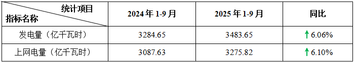 表2:2025年1-9月运行核电机组电力生产指标统计表