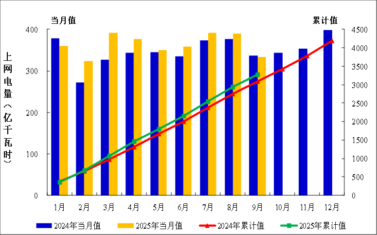 图3:2024年1月至2025年9月全国运行核电机组上网电量趋势