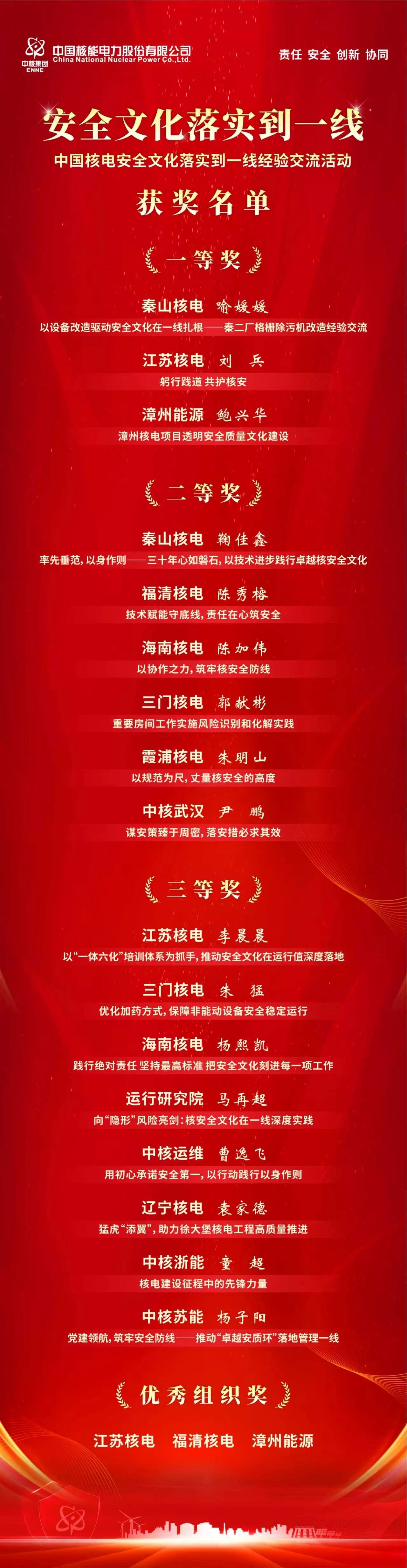 作为安全文化建设的重要成果展示与经验交流平台,此次活动不仅是对各单位工作的集中检阅,更凝聚起深化安全文化建设的共识。中国核电将以此次活动为契机,持续推进安全文化落实到一线工作,完善体系、强化赋能、提质增效,助力国家能源安全与双碳目标实现。