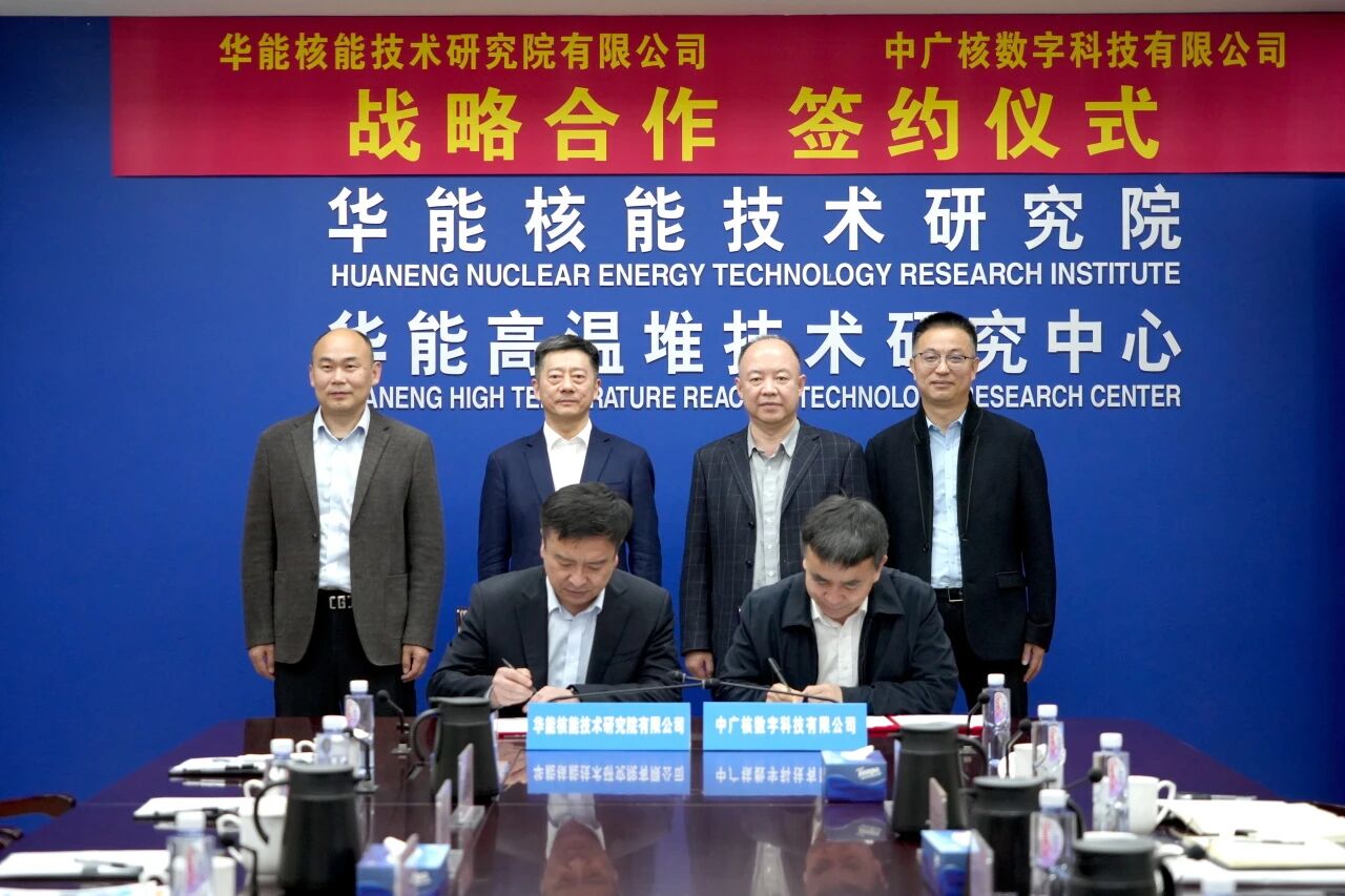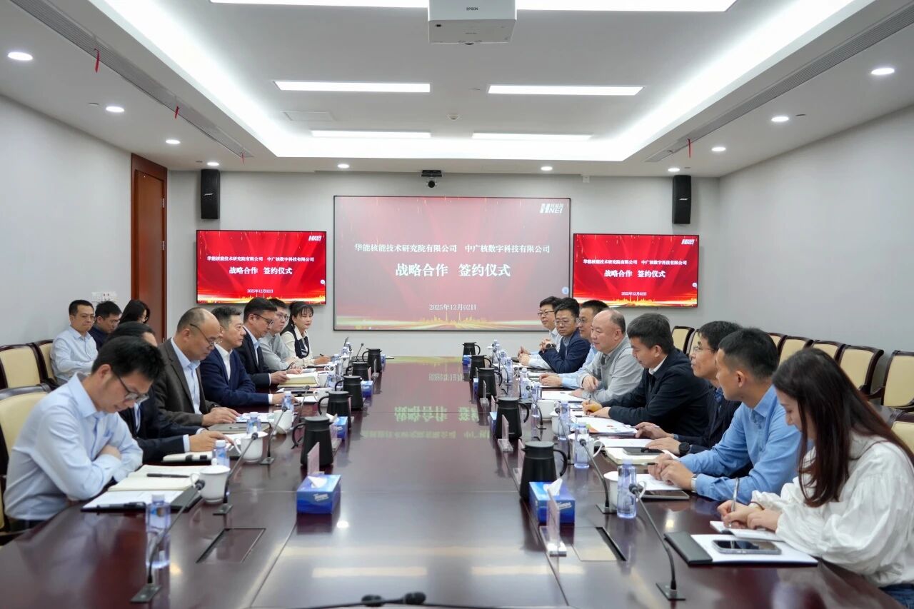 12月2日,华能核能技术研究院与中广核数字科技有限公司正式签署战略合作协议。双方将本着优势互补、共建共享、合作共赢的原则,在高温气冷堆与压水堆数字化仪控系统设计、运维保障及数字化业务等领域持续加强协同,共同推动我国核能产业高质量发展。