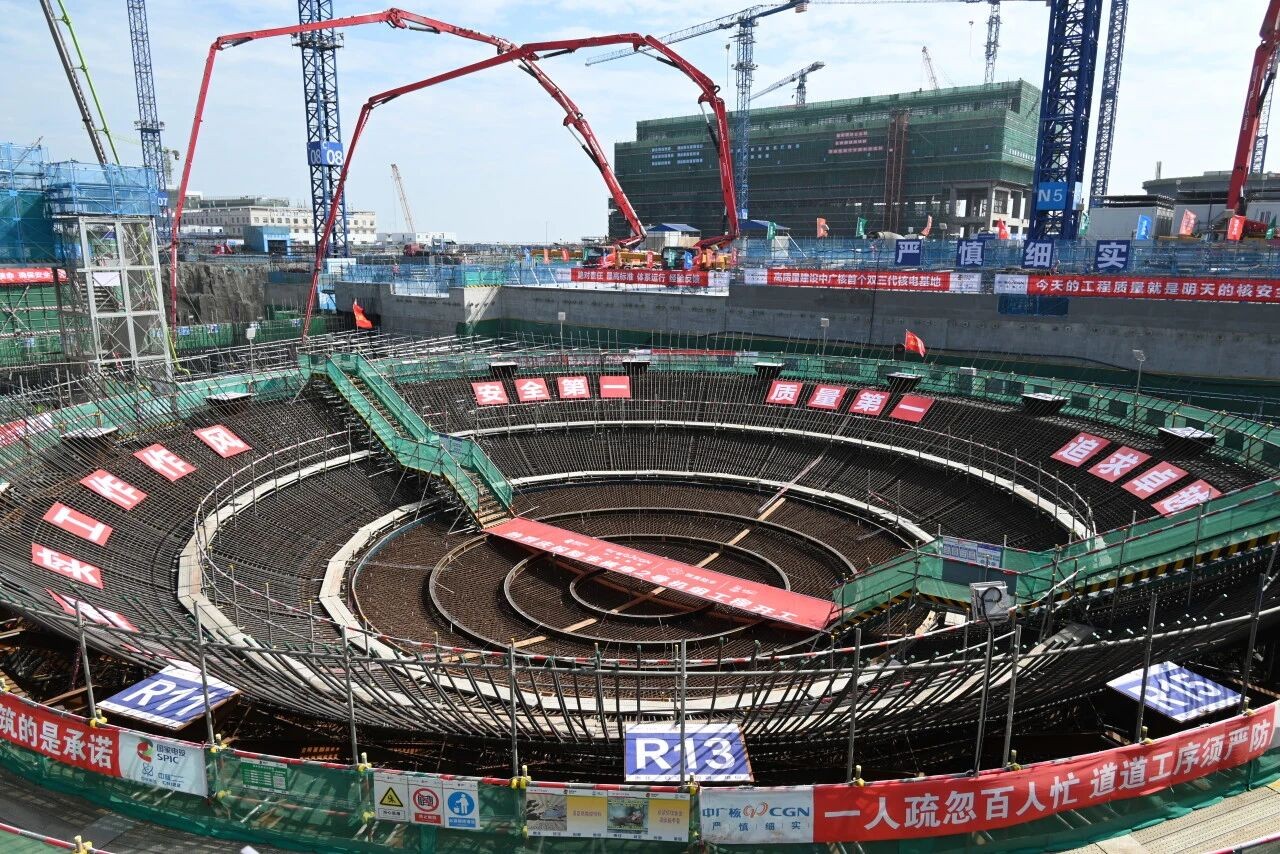 2号核岛基础长约89.1米、最宽处49.1米,预计浇筑混凝土总量6635.5立方米,为难度较高的大体积混凝土浇筑。作为项目总承包方,上海核工院基于向技术要一切的创新理念,在前序项目和1号机组的基础上持续开展施工优化:首次实现核岛底板周边全范围逆作法施工,降低外墙钢筋密集区振捣难度;实现插筋全范围落底,化解浇筑阶段的偏位风险;对梯笼及脚手架通道布置进行优化,能够有效提升浇筑效能,保障浇筑质量。