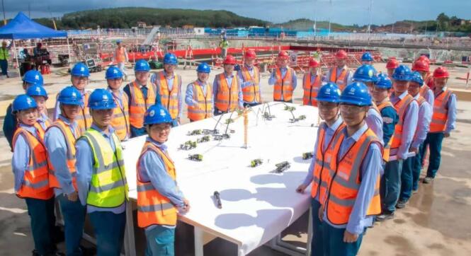 在历经60个小时不间断浇筑后,12月25日02时58分,白龙核电项目1号机组核岛FCD顺利完成。从荒滩起步到如今的初具规模,白龙核电项目建设的每一步都凝聚着核工业建设者的智慧与汗水。