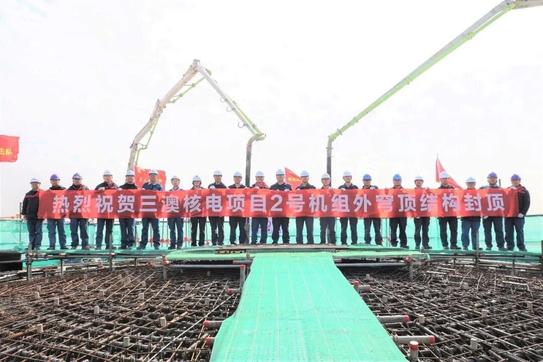 12月31日,三澳核电2号机组外穹顶结构顺利完成封顶。标志着该机组反应堆厂房主体结构全面完工,也为三澳核电一期主体工程土建施工画上了句号。在施工过程中,项目团队积极应用“学习曲线”管理方法,充分借鉴1号机组穹顶施工经验,动态优化作业逻辑,并创新采用“原位逆作法”等工艺,实现自上而下、第一层与第五层同步施工,使施工周期较1号机组缩短32天。同时,团队在保障安全性能和质量的基础上,对穹顶内侧免拆钢模板实施轻量化设计,较1号机组减重220吨,降低建安成本约42.5%。