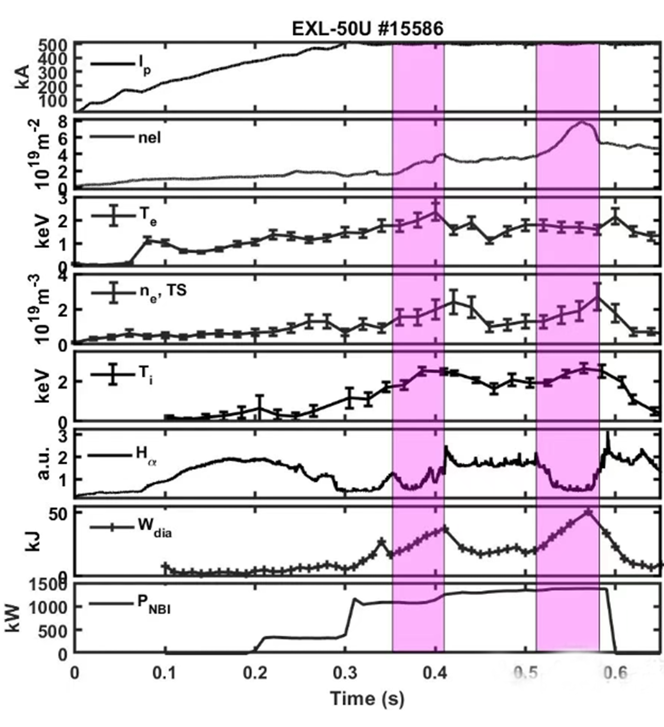等离子体电子密度、电子温度较低约束模提升一倍;